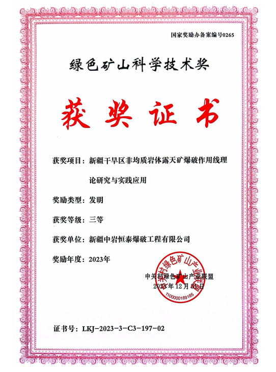 奋斗pg电子游戏试玩丨中岩恒泰荣获绿色矿山科学技术奖三等奖