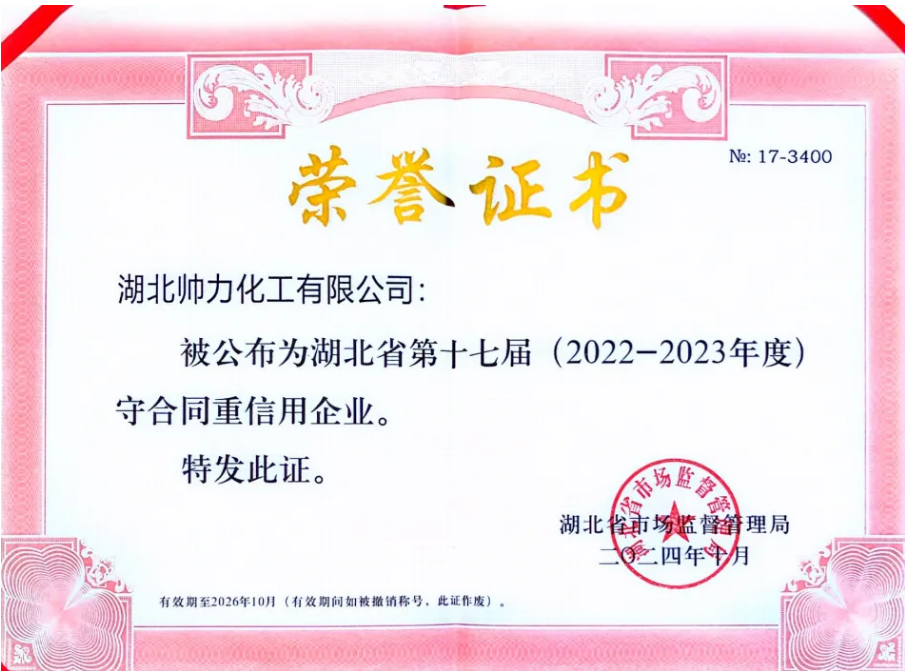 奋斗pg电子游戏试玩丨湖北帅力再次获评省级“守合同重信用”企业